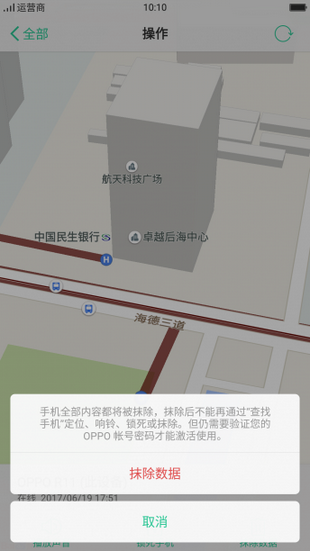最新根据需求进行操作,如下图点击“数据抹除”按键,抹除手机里全部数据保护隐私不被泄露。