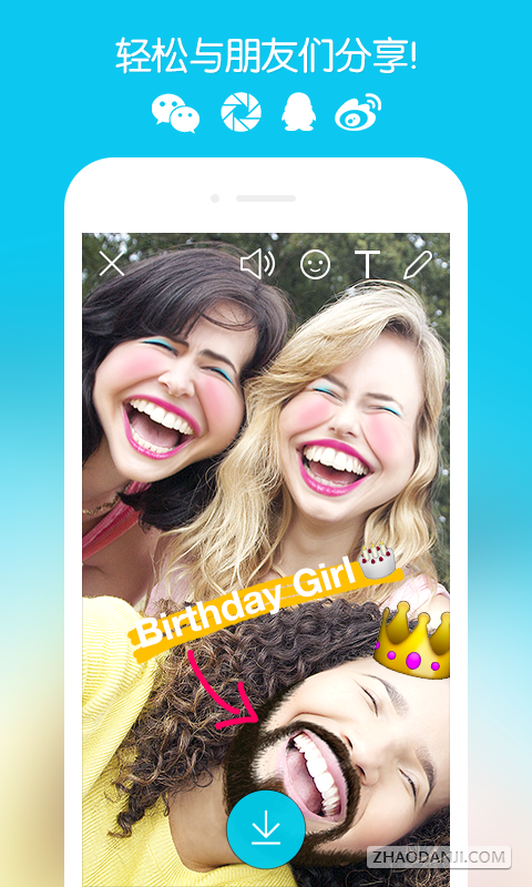 给照片视频添加创意表情图,文字和涂鸦,跟朋友们共享吧!