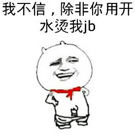 我不信除非你用开水烫jb表情包是网络上流传的恶搞系列表情包之一,一般多见在网络论坛和QQ微信等聊天中,网民们多用这个表情包来表达自己的无奈调侃之情,你说的是真的?好吧你用开水烫J8给我看我就信。