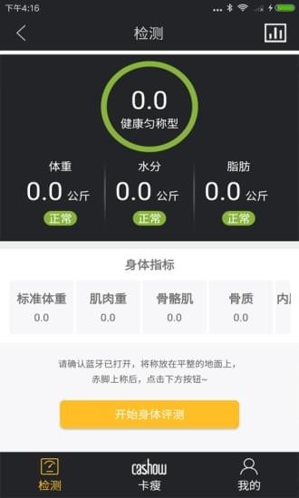 卡瘦应用可以快速的连接体脂秤,精准测量您的身体各项指标,并提供详细的数据实时展示。
