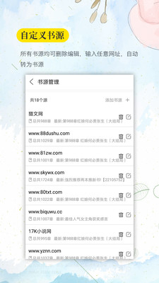 所有书源均可删除编辑,输入任意网址,自动转为书源