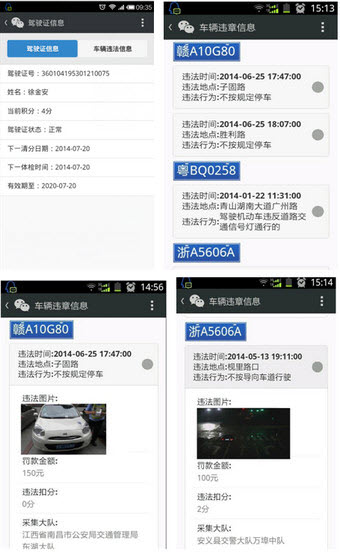点击账号管理进行驾驶证绑定、车辆绑定,只需输入驾驶员姓名、驾驶证号、档案编号或者车主姓名、车号、车架号后六位等信息即可,每个微信号可以绑定三辆车和一个驾驶证,输入界面全部为可视化对话框,操作方便快捷。绑定后,可以点击我的违法即可查询车辆违法信息,包括:违法时间、违法地点、违法行为、违法图片、罚款金额、违法记分、管辖大队、违法代码;驾驶证信息,包括:当前积分、驾驶证状态、下一清分日期、下一体检日期、有效期等信息。