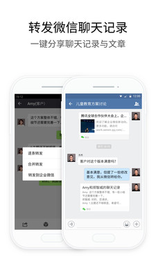 微信中的聊天记录、订阅文章,都可一键快速转发到企业微信。企业微信也可转发到微信。