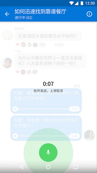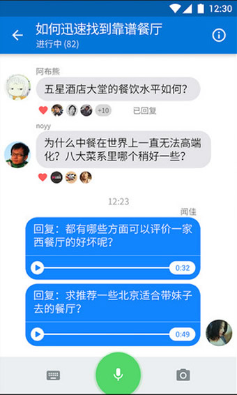 4.分享进行时,「分享者」只需要点击「听众」所提出的问题便可直接进行语音回答,在语音上方还会有相关问题的标注,方便信息检索。