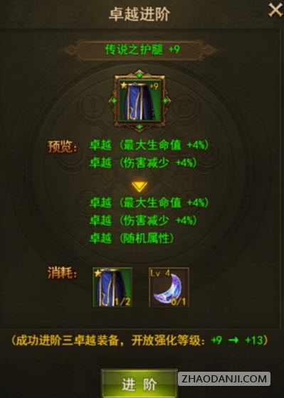 参考下图,通过卓越进阶系统,我们可以将双卓越装备进阶成三卓越装备。