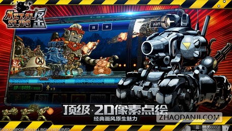 采用经典的2D像素点绘画风,SNK御用画师作画,场景角色完美还原,枪械战车悉数登场。