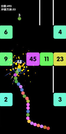 滑动手指,引导一条由球球组成的蛇,并将方块打破。